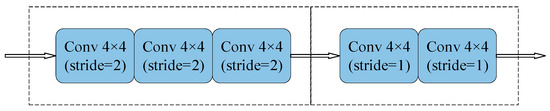 The discriminator used in our CycleGAN model is a PatchGAN [14,15], which is a fully convolutional network, as shown in Figure 4. The receptive field of PatchGAN is set as 70 × 70 pixels, which corresponds to a small region in the input image so that the training model can focus more on image details.