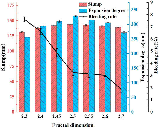 Effect of the fractal dimension on the slump, expansion, and bleeding rate of slurry.
