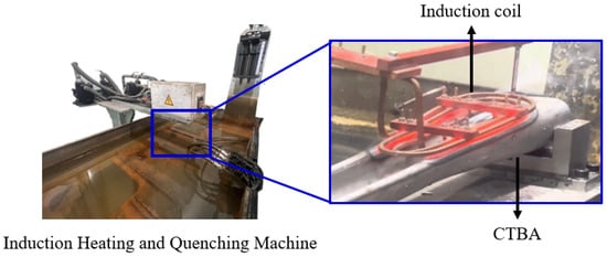 The coupled torsion beam axle (CTBA) is a critical component in automotive engineering, necessitating high strength and durability. It is primarily utilized in rear suspension systems to support the vehicle’s weight and endure forces encountered during driving, thereby ensuring a stable and reliable ride. These operational demands require exceptional strength and durability, particularly in regions subjected to concentrated external loads [1]. Traditional manufacturing processes, such as hot press forming and heat treatment, are commonly employed to fulfill these stringent requirements. Hot press forming involves shaping metal at elevated temperatures, followed by rapid cooling to enhance material strength. While effective in improving the overall strength of a component, this process is time-intensive and cost-prohibitive. Furthermore, because only specific regions of the torsion beam endure significant loading, enhancing the strength of the entire component through hot press forming results in inefficiencies [2]. As an alternative, induction hardening has garnered significant attention due to its ability to selectively treat specific regions of a component. Induction hardening operates on the principle of electromagnetic induction, wherein high-frequency current passing through a coil generates induced currents that facilitate rapid heating of targeted areas. This method is not only efficient, but also allows for precise and selective heating, rendering it an appealing alternative to conventional approaches [3].