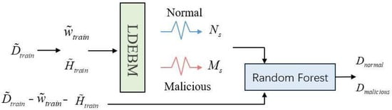 Furthermore, the true labels of other samples in are inferred using a random forest, utilizing the corrected label sample sets and . From this procedure, the label-corrected training set is obtained. The corrected training samples are further divided into and , which represent the normal and malicious samples, respectively.