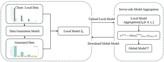 Researchers primarily focus on deep learning frameworks aimed at enhancing detection accuracy, with limited attention given to resolving the non-IID (non-independent and identically distributed) data challenges in Federated Learning. Data augmentation techniques also face persistent challenges, including insufficient representativeness of generated samples, redundancy in augmented data, and difficulties in stabilizing model training. Schwartz et al. [33] introduced the use of autoencoders to capture distortion information for samples within the same class. By generating additional samples and incorporating them into the training process, classifiers can be enhanced to improve overall model performance. Zhao et al. [34] suggest that weight divergence accounts for the negative effects of non-IID data on Federated Learning model performance. They recommend constructing a globally shared dataset to support model training, with experiments revealing that sharing as little as 5% of global data can lead to a 30% accuracy improvement on the CIFAR-10 dataset. Ma et al. [35] introduced the Hybrid-FL method, which enhances the global model’s accuracy by requiring clients to share a portion of raw data with the server for centralized training. Shin et al. [36] developed the XorMixFL scheme, employing XOR-based encoding and decoding to address the non-IID challenge while safeguarding data privacy. Tian et al. [37] proposed a training strategy leveraging preshared data, where randomly selected clients contribute local data to facilitate pre-training of the global model, effectively mitigating convergence issues in non-IID scenarios.