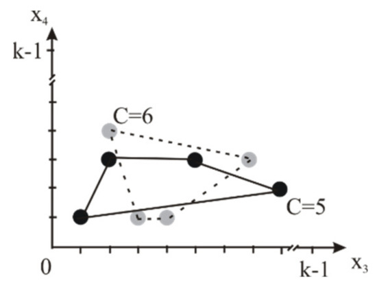 As in earlier publications [26,68,69], we consider basic definitions of MVL according to [70], where the discrete -valued AGA calculus operates with discrete MVL functions, which is given for input variables, , and one output variable, . It is very handy for multi-parametrical modeling in AGA that variables and an arbitrary function, , can have discrete truth levels from the finite set of natural numbers, i.e., . Here, 0 responds to the absolute false value, and indicates the absolutely true one. The complete set of AGA operators [70] given by expression Eq. (1)