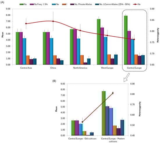 - Peakall, R.; Smouse, P.E. GenAlEx 6.5: Genetic analysis in Excel. Population genetic software for teaching and research—An update. Bioinformatics 2012, 28, 2537–2539. [Google Scholar] [CrossRef]