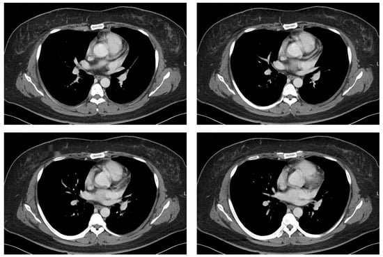 This study also identified the superdiaphragmatic cross-section as a key region of interest (ROI) in abdominal CT imaging for predicting weight loss. Various intra-abdominal organs were examined as potential ROIs, including the liver, pancreas, and small intestine. However, the above-diaphragm-level cross-section consistently emerged as the most relevant ROI. This finding suggests that subcutaneous fat at this level plays a crucial role in predicting postoperative weight change. This result aligns with prior studies [] that reported a lower CT radiodensity of abdominal subcutaneous fat in obese individuals compared to non-obese individuals. Additionally, these studies identified post-surgical changes in radiodensity as being associated with clinical outcomes. In addition, research on patients with liver cirrhosis [] found that subcutaneous fat radiodensity was associated with mortality. Histological analysis revealed correlations between fat tissue characteristics and clinical outcomes, suggesting that similar mechanisms could potentially play a role in predicting postoperative weight loss in our study.