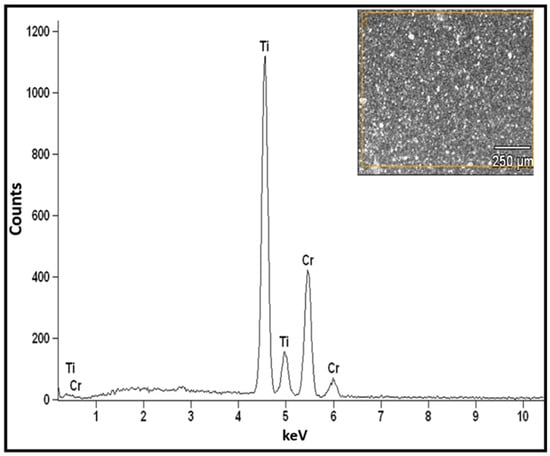 The SEM image shows the microstructure, and the EDS spectra shows the presence of Ti and Cr elements (Figure 2).