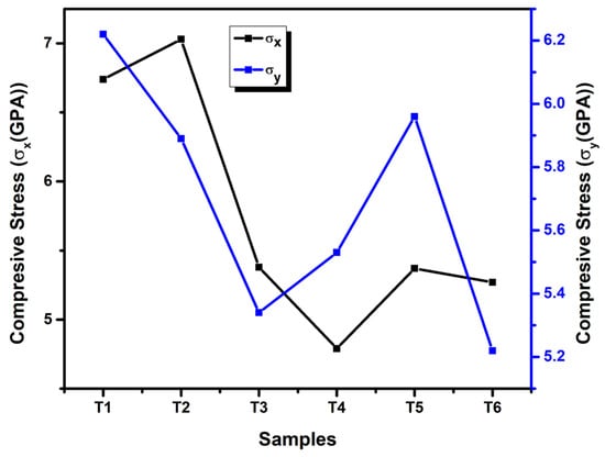 Comparison of compressive stress (σx and σy) developed in each sample.