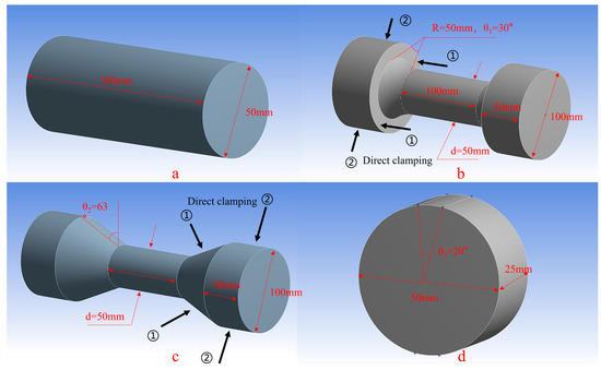 - Wang, C.; Xia, Y. Two Dimensional Axisymmetric Analysis of Bar Bar Tensile Impact Testing Apparatus by Elastoplastic FEM. Chin. J. Appl. Mech. 1999, 16, 65–73. (In Chinese) [Google Scholar]