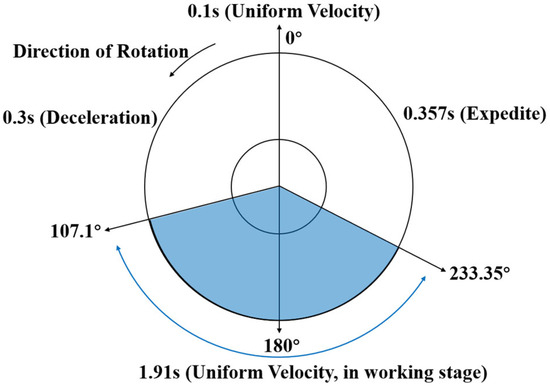 There are many factors affecting the disturbance torque of a mechanism, including motor cogging torque, friction torque, and the moment of inertia. The cogging torque and friction moment are usually small and can be minimized by designs such as motor and bearing lubrication. The disturbance moments are mainly due to mass imbalance and variable speed modes. As shown in Figure 1, the two reflecting surfaces are mounted at an angle and have a resulting dynamic imbalance, which causes the perturbation moments. Since the scanning drive mode of the rotating mechanism is variable-speed scanning, as shown in Figure 2, the acceleration and deceleration processes occur within a short time, which generates the perturbation moment.
