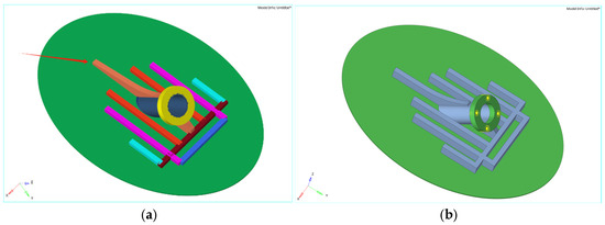 (a) Schematic diagram of the shell and beam element models; (b) Schematic diagram of the solid element model.