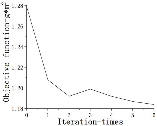 As shown in Figure 11 below, after six iterations, the rotational inertia is minimized to 1.18 × 10−3 Kg·m2.