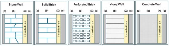 Exterior wall types (see Table 1 for parameters a, b, X, and c).
