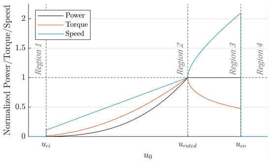 The turbine modeled in this research has four regions of operation, which are defined by the flow velocity, as shown in Figure 2.