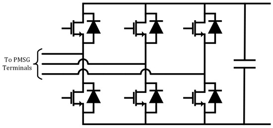 For this work, it has been assumed that the active rectifier is of a two-level voltage source converter topology, as shown in Figure 3. For a metal-oxide-semiconductor field-effect transistor (MOSFET), the losses of a given device can be estimated as the sum of the switching and conduction losses of both the MOSFET and internal body diode.