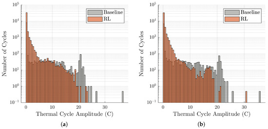 For the case study, the focal point was comparing the life consumption and the total annual energy generation between the RL-based method and the baseline controller for the two mission profiles. A summary of the case study results is shown in Table 5, where LC Impact, Energy Impact, and Revenue Impact are defined as the relative differences between the values calculated for the RL-based control scheme and the baseline method normalized by the values achieved by the baseline method. In Table 5, a negative sign represents a relative decrease and a positive sign represents a relative increase in the respective category. It should be noted that the estimates for revenue have been calculated as the difference in reward signals and , which are defined in (23) and (24), respectively.