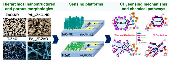 - Knoepfel, A.; Poudel, B.; Gupta, S. Surface-Catalyzed Zinc Oxide Nanorods and Interconnected Tetrapods as Efficient Methane Gas Sensing Platforms. Chemosensors 2023, 11, 506. [Google Scholar] [CrossRef]