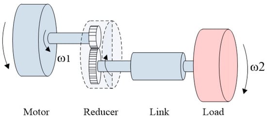 In conventional robotic systems, the encoder is typically installed on the motor side, facilitating accurate measurement of the motor’s position and subsequent calculation of its rotational speed. However, the primary concern in robotic applications often lies in the vibration of the link or the robot’s end effector rather than the motor itself. The reducer, which acts as a critical interface connecting the motor to the link, is inherently characterized by mechanical play and flexible components. These factors contribute to discrepancies between the motor-side and link-side dynamics. Consequently, incorporating an additional encoder on the reducer side to directly measure its rotational speed and integrate these data into the control system presents a promising solution for vibration suppression. Additionally, there is limited research literature on dual encoder control strategies. The relevant literature has proposed a dual encoder scheme, but they focused on solving the position error of the dual encoder. Additionally, it was not included in the control, nor was it mentioned in terms of speed fluctuations [,].