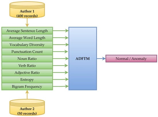 When the model identifies the text as belonging to the Human category, a second layer of checks is performed using a text anomaly detector. This detector uses the writing characteristics of a specific author and calculates the similarities between the text’s characteristics and the reference ones. The ADFTM indicates whether the text is associated with the specified author.
