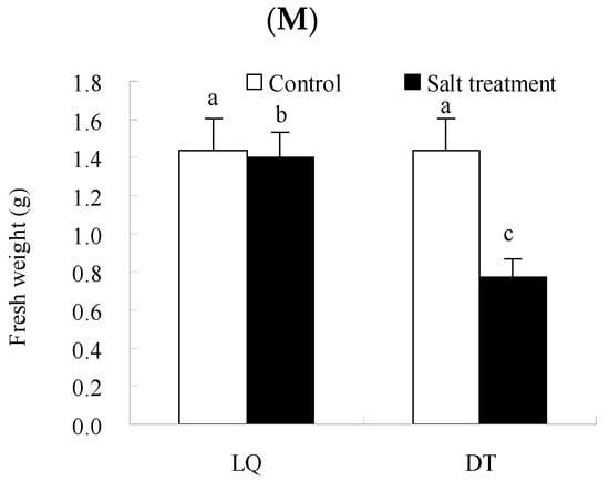 - Shi, P.B.; Gu, M.F. Transcriptome analysis and differential gene expression profiling of two contrasting quinoa genotypes in response to salt stress. BMC Plant Biol. 2020, 20, 568. [Google Scholar] [CrossRef]
