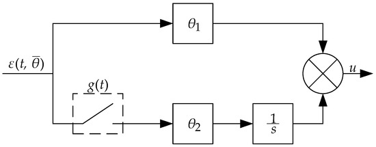 where kp is the proportionality coefficient that determines the controller’s response intensity to a deviation from the set value, Ti is the integration time that characterizes the influence of previous errors on the controller’s action, and g(t, ) is the switching function that depends on time t and the parameter , which is responsible for the controller’s dynamic adaptation.