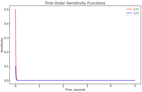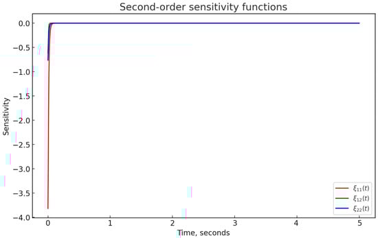The analytical search for sensitivity functions (15) is a labour-intensive task [8,12,14]. Therefore, in this research, a more straightforward method based on the sensitivity model [16,17,18,25,26] was used. Within this research framework, similarly to [25], a second-order sensitivity function model was obtained for system (1) with controller (5):