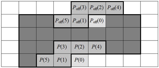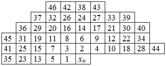 where represents the predictor coefficients, and are taken from the positions shown in Figure 1. When prolonging a predictor, the general rule is that the index value is obtained by taking into account the Euclidean distance, and clockwise ordering if samples have the same Euclidean distance from the sample of interest. Discussions on this and other indexing strategies can be found in [12]. Then, the prediction error is: