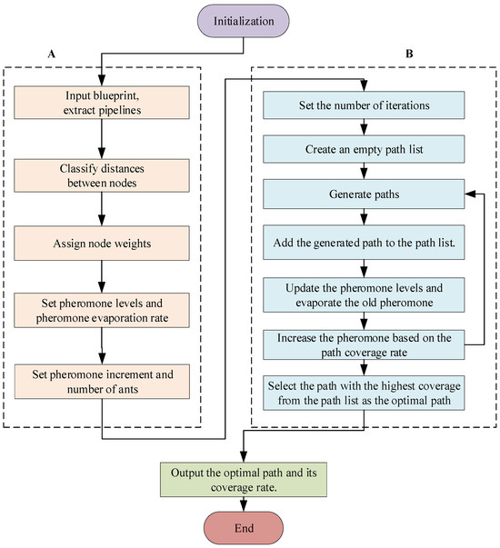 The optimization of pipeline sensor placement is approached as a path planning problem, where the ACO algorithm offers distinct advantages. The core mechanism of the ACO algorithm is pheromone updating, which simulates ants leaving pheromones along the paths they traverse and the gradual evaporation of these pheromones over time. The fundamental formula governing pheromone updates is