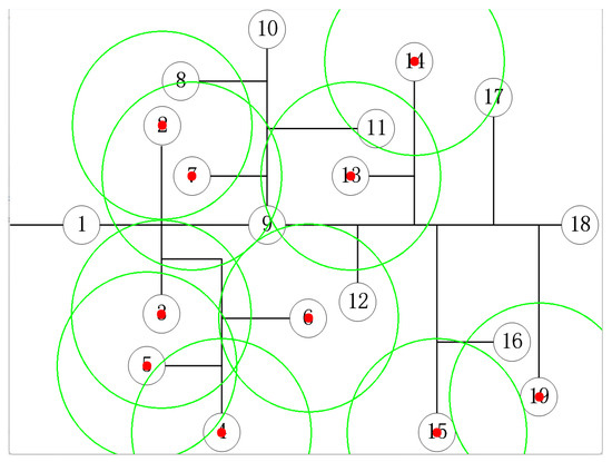 As shown in Figure 15 and Figure 16, the final optimized sensors were placed at nodes 1, 6, 7, 8, 9, 10, 11, 12, 16, and 17, which played a crucial role in maintaining the integrity of regional monitoring. Each retained node covered key areas, ensuring no blind spots in the monitoring network, significantly improving the system’s cost-effectiveness and ease of maintenance. This strategy not only reduced equipment and operational costs but also optimized resource allocation, demonstrating the practical value of data-driven optimization methods in urban infrastructure management.