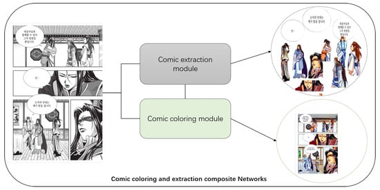 This section mainly introduces the proposed composite network for automatic colorization and content extraction of black-and-white comics. As shown in Figure 1, the network consists of a comic extraction module and a comic colorization module.