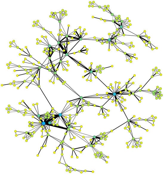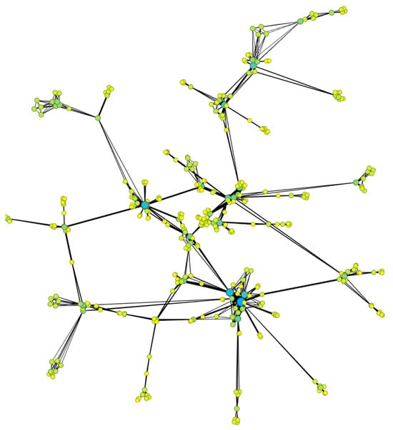 - Jacomy, M.; Venturini, T.; Heymann, S.; Bastian, M. ForceAtlas2, a Continuous Graph Layout Algorithm for Handy Network Visualization Designed for the Gephi Software. PLoS ONE 2014, 9, e98679. [Google Scholar] [CrossRef] [PubMed]