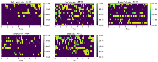 - Dewi, S.P.; Prasasti, A.L.; Irawan, B. The Study of Baby Crying Analysis Using MFCC and LFCC in Different Classification Methods. In Proceedings of the 2019 IEEE International Conference on Signals and Systems (ICSigSys), Bandung, Indonesia, 16–18 July 2019; pp. 18–23. [Google Scholar] [CrossRef]