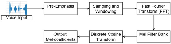 The step-by-step process for computing MFCC is illustrated in the block diagram in Figure 2. The block diagram presented in Figure 2 is given to explain the general operation of the MFCC calculation process.
