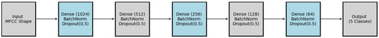 - Five Hidden Layers: Layers that allow the model to learn more complex relationships. These layers contain the following components: