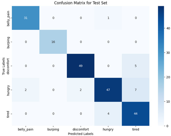 The Donate a Cry dataset was developed through recordings of infants’ crying sounds and relevant details collected by parents using a mobile application compatible with both iOS and Android devices. Users who uploaded audio recordings followed specific instructions to label the cries and provided the presumed reasons for crying. Initially published by Gaber Veres on GitHub in 2015 [25], the dataset underwent updates involving pre-audio processing for each recording. The dataset comprises audio files of infant cries from babies aged between 1 and 22 months. The revised version of the dataset was utilized in this research. Table 2 illustrates the distribution of data across different classes. For a fair comparison, the dataset was preprocessed to have the same number of data and the same type of splitting as the work in the literature. Data splitting and data augmentation are presented in detail in the following subsections.