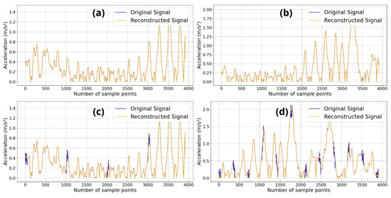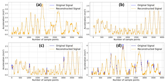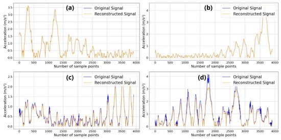 Box-plots of values from the CAE model. (a) Accelerometer 1; (b) accelerometer 2; (c) accelerometer 3; (d) accelerometer 4.