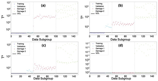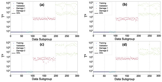 where represents the sample mean vector, while and are the reference mean vector and the reference covariance matrix, respectively. The UCL is defined as the value that exceeds 95% of the values of the training data, establishing a threshold for anomaly detection [27,37].
