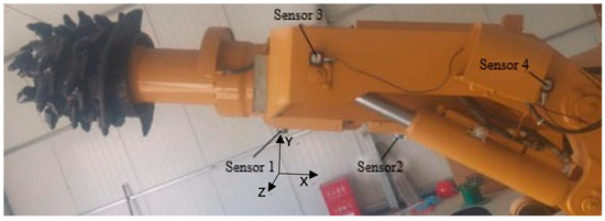 The operational environment in coal mine tunneling involves group activities within narrow and semi-enclosed spaces, which are subject to complex and variable conditions [1,2]. Uncertainties in the physical properties of the coal seam, roof pressure, and tunnel conditions contribute to significant fluctuations in working loads for roadheaders, leading to low predictability [3,4]. Consequently, the mechanical vibrations exhibit characteristics such as non-linearity, time variation, and strong coupling. Due to complex impacts and forced vibrations, the key components of a roadheader may experience reduced fatigue life and potential failures [5]. Fault occurrences inevitably bring changes to the structural characteristics of the machine, affecting its vibration patterns. Therefore, structural vibration analysis offers valuable insights into potential damage risks for the roadheader [6,7].