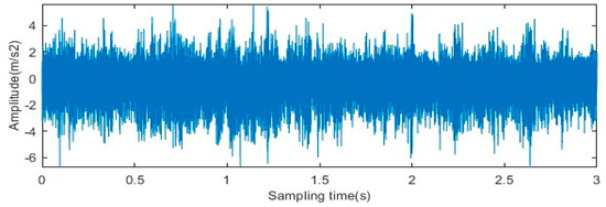 The vibration data acquisition experiment utilized a total of six sensors. The sampling frequency of the vibration signal is 10 kHz. Figure 5 depicts the vibration acceleration signals recorded by Sensor 1 during health operation of the roadheader.
