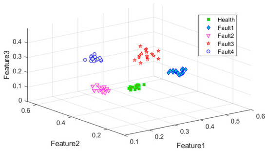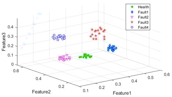 This study employs low-dimensional features of training signals (shown as Figure 11) as KNN training sets, while low-dimensional features of test signals (shown as Figure 12) are used as the samples for classification. It is crucial to choose an appropriate value during the classification calculations.