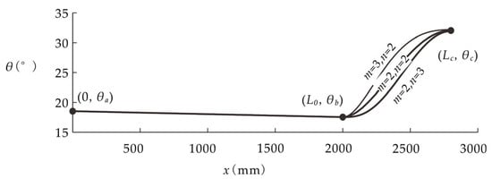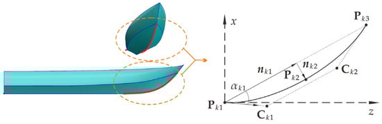 Control point Ck3 can be evaluated by solving Equation (14), which is established based on the slope constraints at both endpoints, given that the end angle at the design parameter is αk.