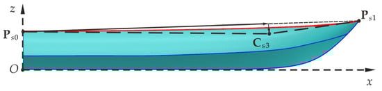 On the other hand, designers are more concerned with the distribution of the height of the side projection of the chine curve along the longitudinal direction of the hull and the curvature of the curve. To this end, the coefficients λs1 and λs2 are introduced as shape coefficients, and Equation (33) is adopted to construct the relative position relationship of the control point coordinates Cs3, as demonstrated in Figure 15.