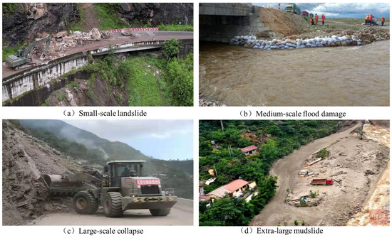 On the other hand, geological disaster events in extreme environments and severe weather pose unique challenges to sparse road networks [9,10,11]. Unlike rare large-scale events such as earthquakes [12], tsunamis [13], and floods [14,15], frequent geological disasters often occur before the previous incident is fully repaired, causing continuous service interruptions and long-term recovery efforts. This results in the cumulative degradation of road network infrastructure and service performance, severely impacting the stability and safety of the road network. Compared to dense road networks, sparse road networks lack alternative bypass routes, making them more vulnerable to disasters. When a disaster occurs, it severely hampers emergency response efforts and significantly delays the arrival of emergency relief and recovery resources. Moreover, the critical components of these networks, including bridges and tunnels, may require months or even years for repair or reconstruction [16,17]. During this period, utilizing the remaining functionality of damaged infrastructure for intermittent passage is crucial for maintaining the operability and accessibility of the road network.