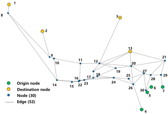 We choose a directed graph to represent the topology of sparse road networks in disaster-prone areas [42]. Based on graph theory, the sparse road network is abstracted as a directed graph G = (Node, Edge), where Node represents the set of nodes, selecting major traffic hubs that significantly impact driving routes, and Edge represents the set of directed arcs connecting these nodes, corresponding to the road segments.
