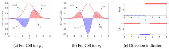 An illustration of the Fre-GSI and its corresponding direction indicator is presented in Figure 3 by taking the toy model in Equation (10) for example. Notably, the sum of colored areas above (or below) the X-axis is exactly the importance measure based on the Fre-GSI.