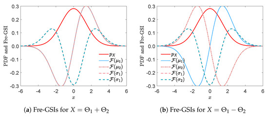 Computing the Fre-GSI in Equation (19) mainly includes two steps: (1) Estimate the PDF of X in terms of and the perturbed PDF of X in terms of . This can be carried out using, for example, moment-based methods [38], kernel density estimation [22], probability density evolution method [39], etc. (2) Approximate the derivative of PDF of X via finite difference methods [10], i.e., . The denominator in Equation (19) (i.e., the norm term) can be computed analytically or numerically [10]. Moreover, by Equations (9) and (19), we have