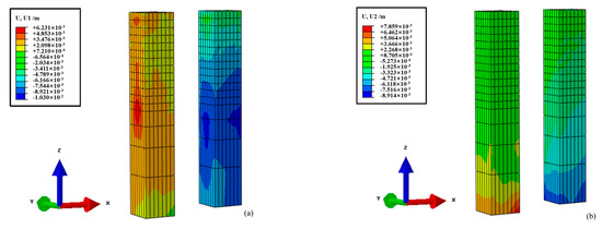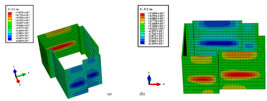 Displacement contour maps of diaphragm wall. (a) The X-direction; (b) the Y-direction.