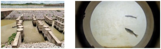 Recently, the wide construction of hydropower stations in river basins, including sluices and dams, has disrupted river continuity []. This has significantly impacted the habitats of aquatic species, and some species relying on upstream migration are facing the threat of extinction []. Fishways are designed to assist migratory fish in overcoming the abovementioned challenges, thereby ensuring the ecological balance within the river basin. Detecting aquatic life in migration channels is crucial for protecting the natural behavior of fish [], and fish detection is a critical step []. However, the complexity of deploying models onsite in fishways is high, and images with turbid sediment are difficult to detect. To overcome these limitations, more efficient and accurate detection methods are needed.