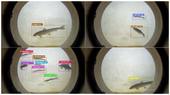 Through the computer system managed by the hydropower station authorities, our onsite detection equipment allows for real-time observation of fish passage and detection performance. Compared to traditional methods (manual detection), this approach significantly reduces manual intervention while improving both accuracy and efficiency. The detection results are shown in Figure 10. This method eliminates the need for intervention by fishway maintenance and management personnel. Additionally, analyzing the daily fish passage data can effectively provide guiding parameters for the rational operation of the fishway. At the same time, multiple datasets of different fish species can be collected. Detecting fish passage through the fishway ensures the scientific construction, reasonable operation, and management of fishway facilities. Additionally, it allows for real-time observation of fish passage in the system, effectively meeting the requirements for real-time fish detection and improving the efficiency of fishway monitoring.