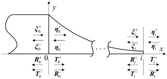 where the iterative formulas for the equivalent transmission and reflection matrices , , and in the first i segment are as follows: