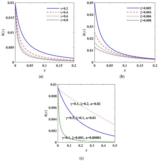 Figure 9 illustrates the relationship between h(x) and the ML function parameters of γ and ξ, as well as the length of the ABH part x when a = 1. It can be seen from the results that the smaller the ξ and the larger the γ, the more drastic the change in h(x).
