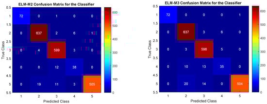 The results regarding the optimization of two- and three-hidden-layer ELM models (M-ELM) are presented below in Figure 8, Figure 9, Figure 10, Figure 11, Figure 12 and Figure 13.
